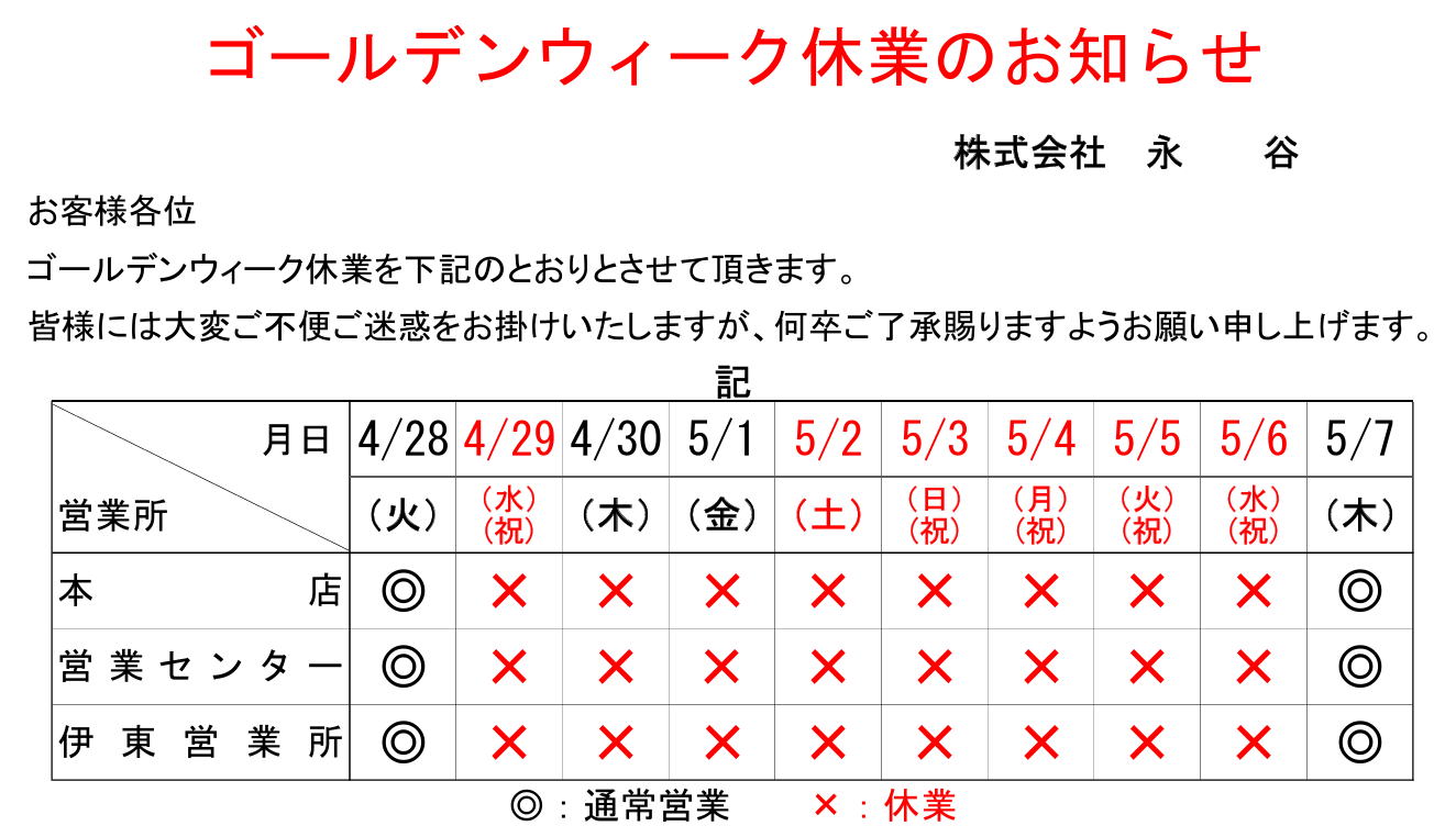 ※詳しくは ㈱永谷 本店(東本郷店)まで